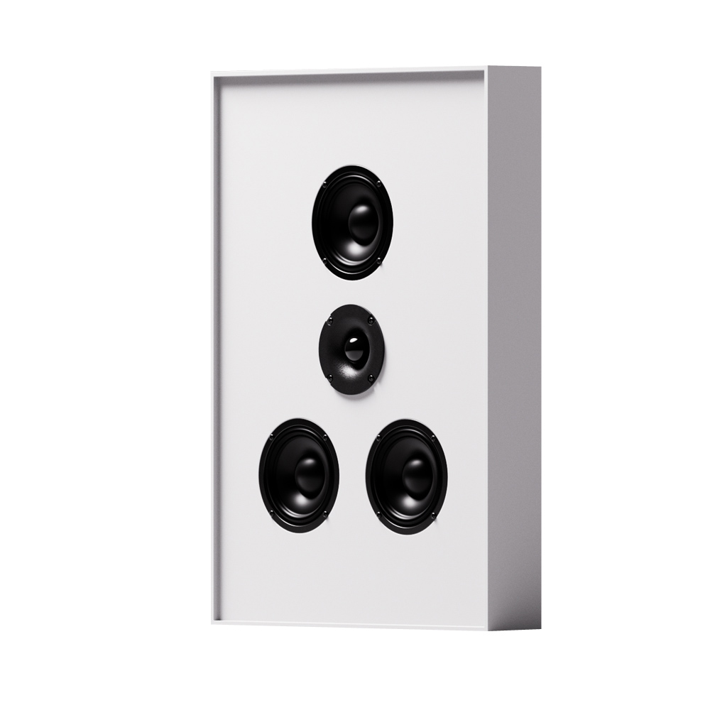 Diffusore profile on-wall 2 vie con triplo woofer. Risposta in frequenza 59 Hz 20 kHz con sensibilità 88 dB ed impedenza 4 ohm. Amplificazione raccomandata 120 W. Colore: bianco. Dimensioni (LxAxP): 39x56x9 cm.
