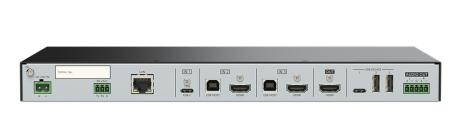 Ideale per sale meeting, applicazioni teleconference e MTR (Microsoft Teams Rooms), permette la teleconference BYOD. Permette la condivisione degli apparati USB per le web conference (microfoni, telecamere, videosoundbar). Datato di triplo ingresso video 4K, selezionabile o auto switch: 1 USB-C (compatibile DP alternate), 2 HDMI (+ USB-B), l'ingresso USB-C fornisce anche alientazione PD da 60 W. Gli ingressi video sono dotati di emulatore EDID e gestione HDCP (NO HDCP killer). Sono disponibili 3 porte USB (1 USB-C e 2 USB-A) per dispositivi web conference e MTR, tutte le porte USB fanno capo ad un HUBUSB. Disponibile una uscita video 4K HDMI e audio stereo analogico bilanciato. Sono anche disponibili una porta di rete LAN e una RS-232 per controllo e configurazione. Installabile sotto tavolo o parete tramite accessorio FP-Z30. Alimentatore esterno multi tensione con uscita a 24 VDC 5 A. Dimensioni (WxHxD) 310x30x160 mm.