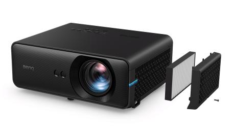 Rapporto di proiezione: 0,49:1, per schermi fino a 120", contrasto 3.000.000:1, durata gruppo Laser 20.000 ore, proiezione libera in tutte le direzioni, 1 pannello DMD (16:9), 2D Keystone ±30° oriz. e vert. + Corner Fit. Connessioni: 2x HDMI 2.2a, RS232 (Dsub 9P), 1x LAN, 1x USB tipo A (5V, 1,5A), 10 W speaker. Rumorosità 35/32 dB (standard/eco mode). Dimensioni (WxHxD): 320x130x255 mm. Peso 5,1 kg.