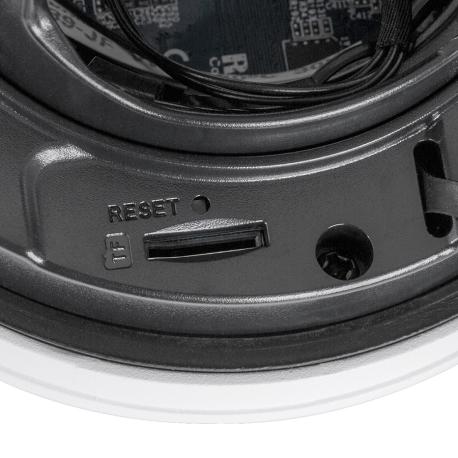 La telecamera è dotata di microfono integrato, supporto per scheda microSD fino a 256?GB, rilevamento del movimento e analisi intelligente (rilevamento persone, veicoli). Il corpo è realizzato in formato Dome compatto (119?×?87,8?mm) certificato ETL, CE, FCC e conforme allo standard NDAA. Il prodotto è coperto da una garanzia limitata di 3 anni. Colore bianco.