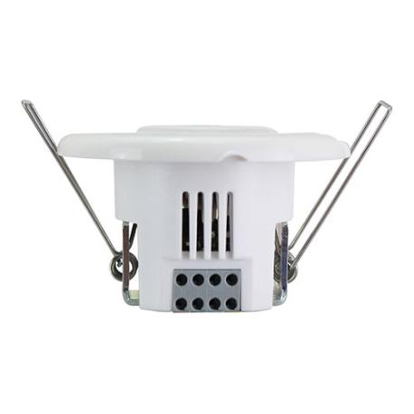 L’HDL MSPU03.4C è un sensore a ultrasuoni da soffitto progettato per applicazioni avanzate di automazione, integrando sensore ultrasonico, sensore LUX, interruttore universale e blocco logico, che possono essere combinati per creare condizioni intelligenti in diversi scenari applicativi. Supporta i comandi di sicurezza HDL e consente logiche complesse grazie a 24 blocchi logici, ciascuno con fino a 20 target di uscita, oltre alla possibilità di utilizzare gli Universal Switch 201–248 come ingressi logici con funzione di auto-off. L’unità offre una portata di rilevamento ultrasonico fino a 6 m con altezza di installazione di 3 m, mentre il sensore LUX copre un range di 0–500 lux. Funziona con alimentazione 12–30V DC, assorbendo circa 30mA a 24V, e opera in condizioni ambientali comprese tra 5°C e 45°C. Il modulo, con dimensioni 63×38 mm, installazione a soffitto e grado di protezione IP20, utilizza materiali resistenti come ABS e lente a infrarossi, offrendo una soluzione compatta, affidabile e versatile per sistemi HDL Buspro. Dimensioni:Diametro 63mm (Foro da incasso 45mm).