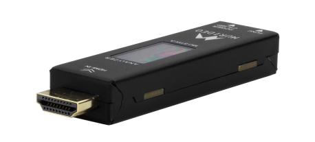 Il MU-STIX-A è un analizzatore HDMI compatto (stick). Gestisce risoluzioni da 720p a 8K fino a 60 fps, incluso 4K a 120 Hz. Supporta color depth di 8, 10, e 12 bit e spazi colore RGB, 4:2:0, 4:2:2, e 4:4:4. Rileva perdite di sincronizzazione e registra il tempo di perdita del segnale.