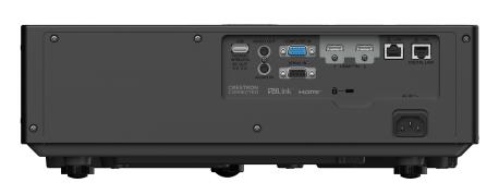 Rapporto di proiezione 1.09-1.77:1, ottica fissa manuale, Digital Link (HDBaseT), installabile in qualsiasi posizione, compatibile con EasyQR, con software MultiMonitoring & Control Software, digital zoom extender, audio incorporato 10 W mono compatibile con modulo wireless opzionale. Contrasto 5.000.000:1, shift +44%-0% v, ±20% h, correzione del trapezio ±25° v, ±35° h. Segnali TV da 480i a 4K (30p). Ingressi: 2x HDMI, 1x RGB/component (D-Sub15), audio stereo I/O (minijack), USB. Controlli: LAN (RJ45), RS-232 (D-Sub9). Rumorosità 39 dB, consumo 400 W. Dimensioni (LxAxP): 399x115x348 mm. Peso: 7.4 kg. Colore: nero.