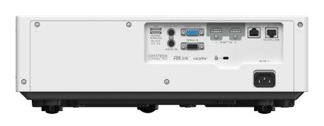 Rapporto di proiezione 1.09-1.77:1, ottica fissa manuale, Digital Link (HDBaseT), installabile in qualsiasi posizione, compatibile con EasyQR, con software MultiMonitoring & Control Software, digital zoom extender, audio incorporato 10 W mono compatibile con modulo wireless opzionale. Contrasto 5.000.000:1, shift +44%-0% v, ±20% h, correzione del trapezio ±25° v, ±35° h. Segnali TV da 480i a 4K (30p). Ingressi: 2x HDMI, 1x RGB/component (D-Sub15), audio stereo I/O (minijack), USB. Controlli: LAN (RJ45), RS-232 (D-Sub9). Rumorosità 39 dB, consumo 400 W. Dimensioni (LxAxP): 399x115x348 mm. Peso: 7.4 kg. Colore: bianco.
