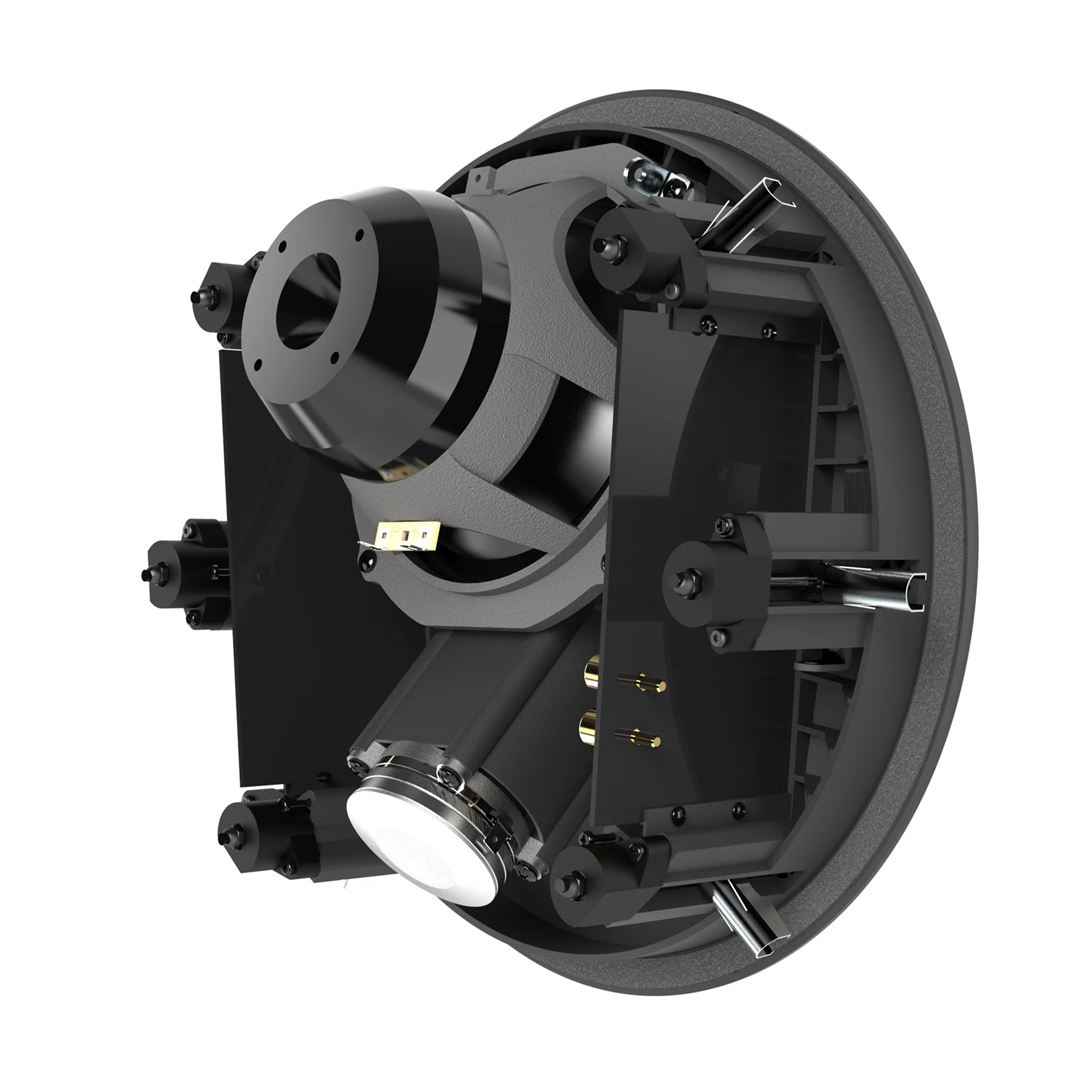 Altoparlante a 2 vie da incasso a soffitto. Woofer a matrice di alluminio da 6,5 pollici (165 mm). Guida d'onda High-Defniton Imaging (HDI™). Sistema di montaggio Cat Claws retrattile per una facile installazione. Morsetti a molla, placcati in oro, a pressione, con morsetti a morsetto a pressione. Griglie tonde e quadrate con incisioni magnetiche.