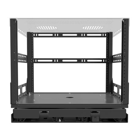 Il cabinet è dotato di guide telescopiche a doppio scorrimento che permettono l’estrazione completa o parziale della struttura per facilitare l’accesso alle apparecchiature senza rimuovere il rack. Le guide sono progettate per movimenti fluidi e includono meccanismi di bloccaggio per evitare estrazioni accidentali, mantenendo sicurezza e stabilità durante l’uso.