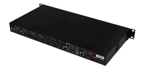 Dotato di controllo tramite front panel, Web GUI, IR e RS-232, il dispositivo offre piena integrazione in sistemi professionali. Ideale per ambienti che richiedono stabilità, flessibilità e switching rapido
