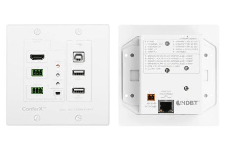 Ricevitore e trasmettitore a muro con diversi tipi di ingressi e uscite. Permette di trasmettere/ricevere varie tipologie di segnale tramite un cavo Ethernet Cat 6a/7 fino ad un massimo di 70 m per HD 1080P e 40 m per 4K. Porte disponibili (3x USB, 1x HDMI, 1x audio stereo (morsettiera a 3 pin), 1x RS-232 (morsettiera a tre pin tx e rx). Risoluzione massima fino a 4K 60 Hz 4:4:4. Risoluzione massima VESA fino a 2560x2048. Risoluzione HDR10, HDR10+, Dolby vision (24/30 Hz). Formati audio supportati: PCM 2.0 canali, LPCM 5.1 e 7.1, Dolby Digital, DTS 5.1, Dolby Digital Plus, Dolby TrueHD, DTS-HD Master Audio, DTS-X e Dolby Atmos. Larghezza di banda pari a 18 Gbps. Certificato HDCP (HDCP 2.2 e precedenti). Consumo energetico totale di 12W (trasmettitore e ricevitore). Dimensioni TX: 11.4x3.6x11.6 cm Dimensioni RX: 2.2x11.4x19.7 cm