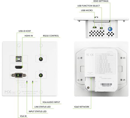 Trasmettitore 1G AV over IP Wall plate (da incasso a muro). Risoluzione massima 4K 30 Hz 4:4:4. Formati audio supportati: PCM 2.0 canali, LPCM 5.1 e 7.1, Dolby Digital 5.1, DTS 5.1, Dolby Digital Plus, DTS-HD High Resolution e DTS-ES. Controllabile tramite Ethernet, IR, Hi-speed USB o RS-232. Ingressi e uscite principali: 2x Rj45 una per la trasmissione MXnet e una per la trasmissione Dante, 1x porta SFP, 1x HDMI type A, 1x HDMI output, 1x RS-232. Compatibile con HDCP (fino a HDCP 2.2). Distanza massima tramite cavo Ethernet di 100 m e fino a 10 km tramite la fibra in Single-mode(in Multi-mode 550 m). Consumo energetico totale 5.5W. Possibilità di montaggio a rack. Dimensioni: 11.6x4.15x11.6 cm. Peso: 0.57 kg Colore: nero. Garanzia di 10 anni.