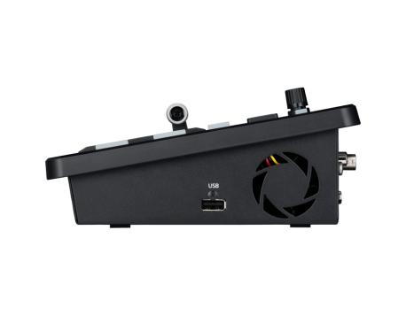 Apparato compatto dotato di ingressi e uscite sia fisici che IP, supporta NDI, SRT e RTMP. Processamento video a 10 bit, frame syncronizer (on/off), effetti Wipe Mix Cut PiP Ckey, Auto Color Adjustment, dotato di 2 chiavi effetti, 2 bus Aux, Still Memory (V+K), multiview (10 patterns), uscita UVC. Dotado di: 4 ingressi 3G-SDI, 2 ingressi HDMI (utilizzabili 4 SDI +1 HDMI o 3 SDI + 2 HDMI), 2 stream NDI HX, 2 NDI Hi Bandwidth (+ alpha channel), ingresso audio stereo (RCA), In/Out reference. Uscite: 2x 3G-SDI, 1x HDMI, 1x USB-C (stream out UVC, UVA), 2 NDI Hi Bandwidth, streaming LAN (SRT e RTMP), tally GPI. Porta LAN 1x (controllo e streaming), 1x USB-A (memoria). Controllo via Software Control Panel, PTZ Camera Connection via LAN (Tally Link, RP Link). Consumo 48 W. Dimensioni (WxHxD): 254x175x67 mm, Peso: 1,8 kg.