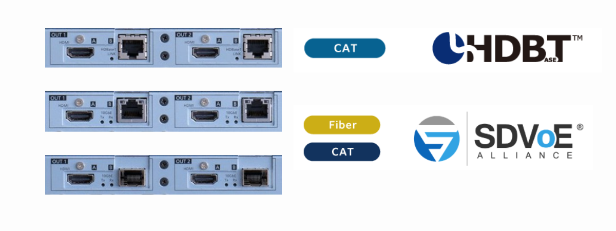 Questi modelli consentono di distribuire segnali locali e remoti contemporaneamente. La trasmissione dei segnali può essere punto-punto, in architetture AV Over IP a 10Gb inoltre possono essere utilizzati come super end-point I/O in reti SDVoE.