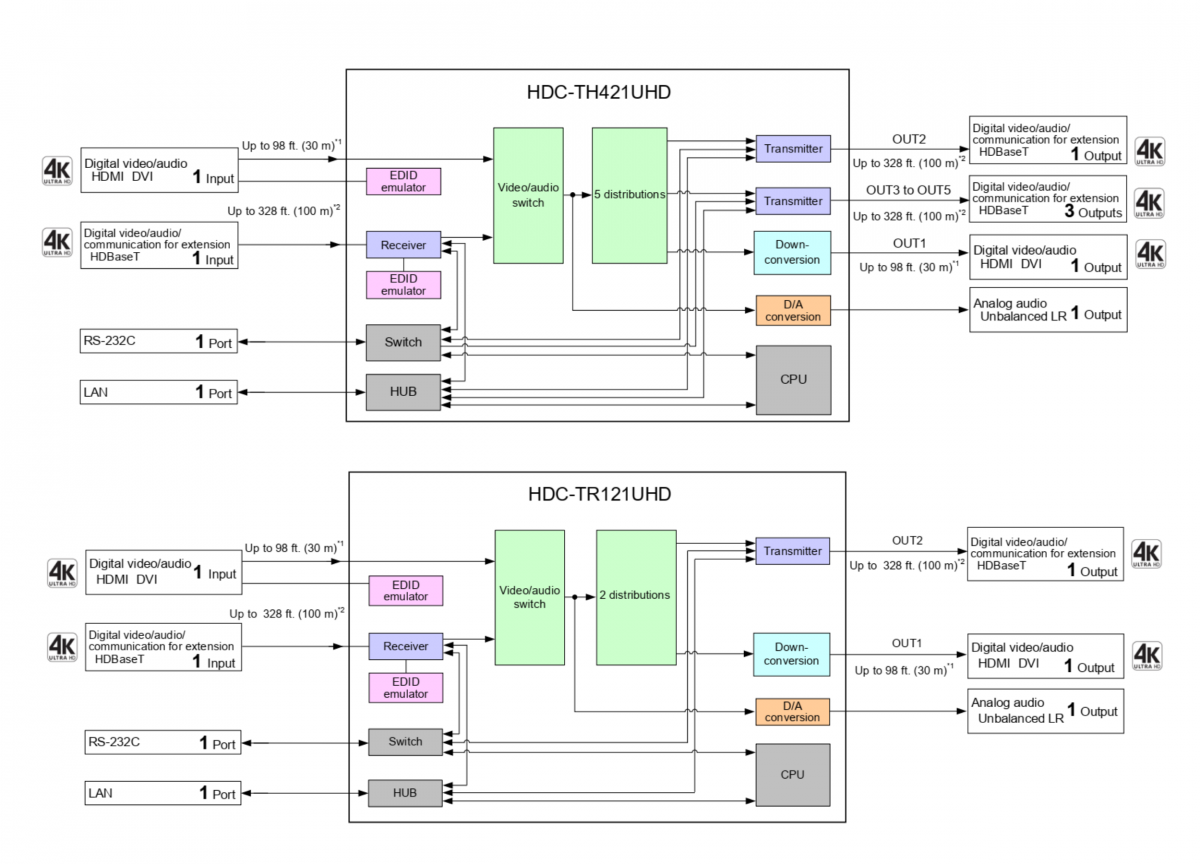 Per tutti questi casi sono stati creati i seguenti dispositivi: HDC-TR121UHD, HDC-TH221UHD, HDC-TH421UHD, HDC-RH221UHD e HDC-RH421UHD. Sono eredi di precedenti modelli di cui ne potenziano le performance aumentandone la versatilità.