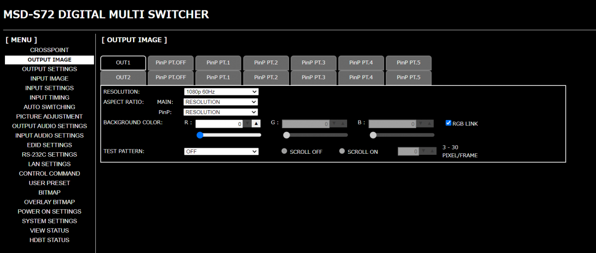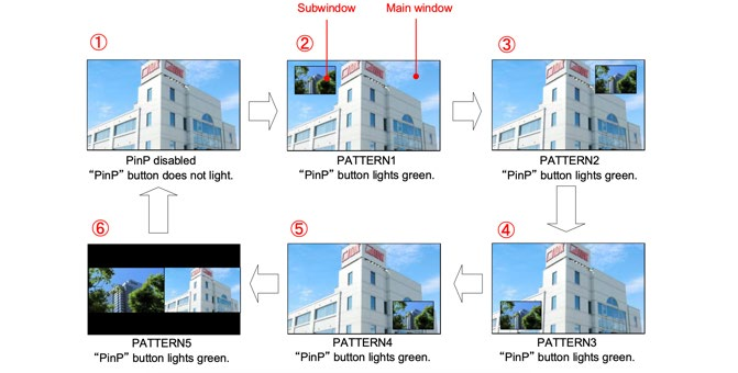 - Doppio PinP e PbyP indipendente per le due uscite, con 5 memorie per ogni uscita liberamente configurabili
