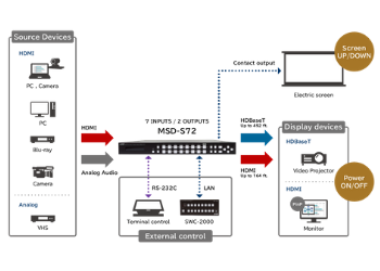 - Control Command via RS-232, LAN, HDBaseT, HDMI CEC e chiusure contatto