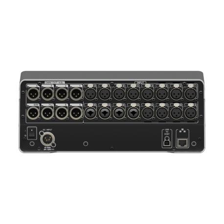 Mixer compatto portatile dotato di 8 + 1 fader configurabili, display da 9" touch screen. Connessioni locali: Ingressi 16 Mic/Line (12 XLR + 4 XLR/TRS Combo), e 8 (XLR) uscite; connessione USB-B per PC (18 in e 18 out), USB-A per memorie (2in e 2out); presa rete RJ45 per controllo. Rack mount opzionale. Dimensioni (WxHxD): 320x140x455 mm. Peso: 6.5 kg. Alimentatore multi tensione esterno.