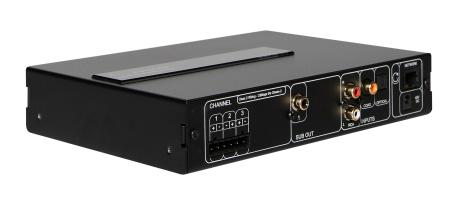 Dispone di protezione termica e da cortocircuito per canale, standby automatico con wake-on-signal, e sistema di raffreddamento passivo per installazioni silenziose. Il design meccanico è ottimizzato per il montaggio in superficie o su rack (kit opzionale), con connessioni Euroblock/Phoenix per uscite speaker e porta RJ45 PoE per connessione e alimentazione semplificata.