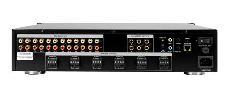 Amplificatore multizona classe D a 12 canali con DSP e equalizzatore Parametrico a 10 bande utilizzabile via browser con funzioni di matrice amplificata e uscita linea per sub dedicata ad ogni zona. Potenza d'uscita: 12x 50 W/8 ohm, 12x 100 W/4 ohm, 1x 400 W/ohm (bridged). Consumo di potenza massimo 1200 W, Sensibilità d'ingresso: 1 Vrms, risposta di frequenza: 20 Hz 20 kHz, ±2 dB. Input: 1 RJ45 (10/100Mbps), 12 V Trigger IN/OUT, IR IN/OUT. Audio Input: Audio Analogico 6x RCA Stereo. Audio Output: Audio Analogico OUT 6x RCA Stereo, 6 subwoofer RCA output. Audio amplificato: 6 connettori Phoenix L+R. Dimensioni: 420x211x44,5 mm (LxAxP). Peso: 9 kg. Compatibile con il sistema cloud OVRC. Disponibili driver per sistemi di controllo Control4, Crestron, RTI, Elan.