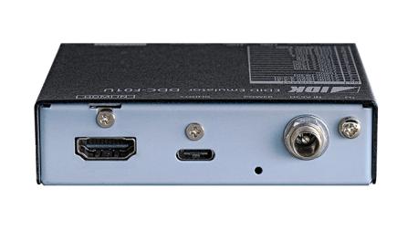 Permette di forzare segnali HDMI secondo il parametro EDID selezionato (è possibile scegliere se: interno, copiato, editato), inoltre provvede a equalizzare il segnale in ingresso degradato e a rigenerare il clock (CDR) per permettere una trasmissione a lunga distanza (12 m In + 12 m Out a 4K @60; 30 m In + 20 m Out a 1080p). Impostazioni tramite commutatore rotativo e vari switch, gestione anche tramite il Sw EDID Configuration Tool via USB-C. Dotato di ingresso e uscita HDMI con TMDS clock da 25 a 300 MHz e velocità fino a 18 Gb, profondità colore 8, 10 e 12 bit, supporta CEC, HDR e 3D. E' possibile abilitare/disabilitare l'HDCP in ingresso (NO HDCP killer), abilitare On/Off l'audio out e altri parametri audio, connection reset. Dimensioni (WxHxD): 88x23x70 mm. Alimentatore esterno multitensione da 5 V DC 3 A è possibile alimentare l'apparato tramite 5V HDMI e tramite USB-C.