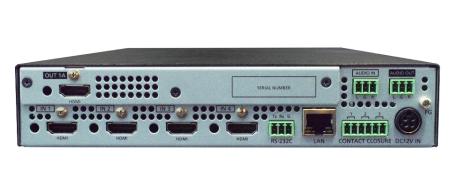 Processore con 4 ingressi HDMI + 1 audio stereo, 1 uscita HDMI 4K @60 HDCP 2.2 + 1 audio stereo. Visualizzabili al max 4 IN video in 4 finestre: posizione e dimensione liberamente configurabili, finestra on/off, finestra prioritaria, colore background, bordo-colore finestra, nome finestra. Commutazione ingressi seamless con effetti: taglio, dissolvenza. Funzioni: gestione avanzata EDID video e audio su ogni ingresso, HDCP on/off, Anti-snow, Connection reset, 32 memorie layout, 16 memorie crosspoint, startup preset, blocco pan. Frontale, cont. Aspect ratio, test pattern generator, memoria logo. Cont. Volume audio In-Out, lip sync, audio breakaway. Control remote system con 9 macro + on-off display, 64 comandi. Pannello con tasti retro illuminati, display LCD, controllo di ogni parametro da menù navigabile. Controllo: pannello frontale, RS-232, LAN (web server). Dimensioni (WxHxD): 210x42x250 mm. Peso: 1,7 kg, alim. 100-240 V AC, 31 W.