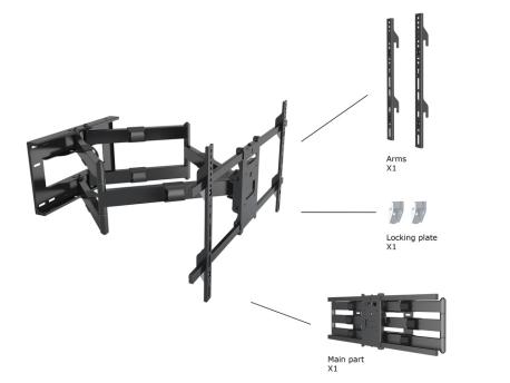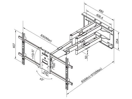 Staffa in acciaio per monitor da 50" a 90" portata 60 kg, movimentazione a pantografo con estensione 83-910 mm, rotazione verso l'alto 10°, verso il basso 5°, inclinazione ±5°. Gestione dei cavi integrata. Colore: nero.