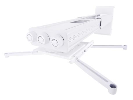 Ideale per proiettori ultra short con peso non superiore ai 55 kg. Il movimento telescopico permette di installare il proiettore da un minimo di 315 millimetri dal muro ad un massimo di 710 mm, con un ±5° di regolazione dell’inclinazione. Colore: banco.