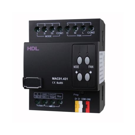 Modulo di controllo HVAC progettato per la gestione centralizzata di sistemi di climatizzazione residenziali e commerciali, HDL-MAC01.431 ottimizza modalità, velocità della ventola e temperatura grazie alla lettura dei dati ambientali, garantendo comfort ed efficienza in ogni condizione. Supporta ventilazione a tre velocità (alta, media, bassa) e modalità operative complete: raffreddamento, riscaldamento, ventilazione, auto e deumidificazione, con tre logiche di lavoro – normale, complessa e raffreddamento forzato – per un controllo fine del clima interno. Compatibile con fino a quattro sensori di temperatura digitali DS18B20 (cavo fino a 100 m), integra una modalità master-slave che consente a un singolo modulo di gestire fino a otto unità subordinate, ideale per impianti distribuiti. Include uscita 0-10 V DC per il controllo della ventola e comunica tramite HDL Buspro, assicurando integrazione robusta nei sistemi domotici avanzati. Progettato per installazione su guida DIN da 35 mm, opera tra 5°C e +45°C con umidità fino al 90%, supporta carichi fino a 5 A per canale e offre una lunga vita utile del relè superiore a 60.000 cicli, rendendolo una soluzione affidabile e professionale per la gestione intelligente della climatizzazione. Dimensioni: 72mm?90mm?64mm (LxAxP) Peso:241g