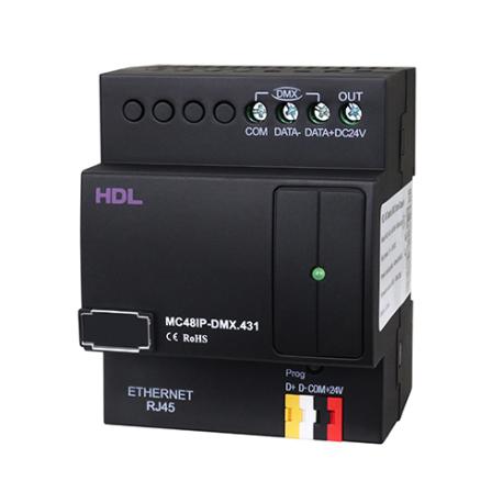 Controller DMX digitale a 48 canali progettato per la gestione avanzata di scenari luminosi in sistemi di automazione professionale, il modello HDL-MC48IP-DMX.431 supporta i protocolli DMX512, Art-Net e HDL-Net, garantendo piena compatibilità con LED RGB, strip RGB e dispositivi DMX di diversa tipologia. Dispone di 48 aree indipendenti, ciascuna in grado di memorizzare fino a 99 scene con tempi di esecuzione fino a 60 minuti, oltre a 99 sequenze programmabili con quattro modalità di playback: avanti, indietro, avanti-indietro e casuale. Comunica tramite HDL Buspro e interfaccia RJ45 UDP/IP, consentendo configurazione e gestione integrate nei sistemi di controllo dell’illuminazione. Funziona tra 5°C e +45°C con umidità fino al 90%, supportando alimentazione DC 12–30 V, per un’affidabilità elevata anche in installazioni complesse. Dimensioni: 72mm×90mm×64mm.(LxAxP) Peso:142g