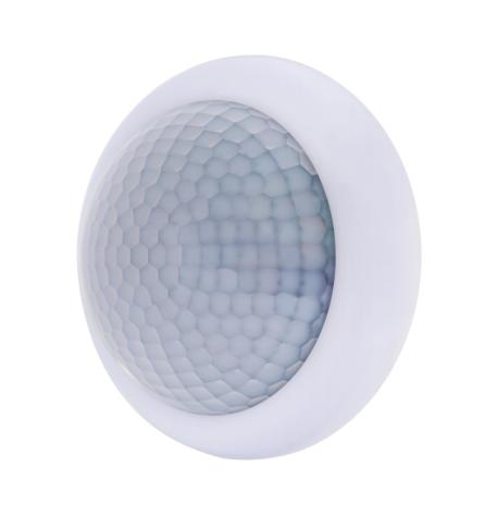 Sensore OmniSense montaggio in superficie, include sensore Lux, sensore di movimento e sensore di temperatura, supporta allarmi trigger, regola l'illuminazione e regola i sistemi HVAC senza sforzo. Campo di rilevamento del movimento H: 2,5 m D: 24 m.