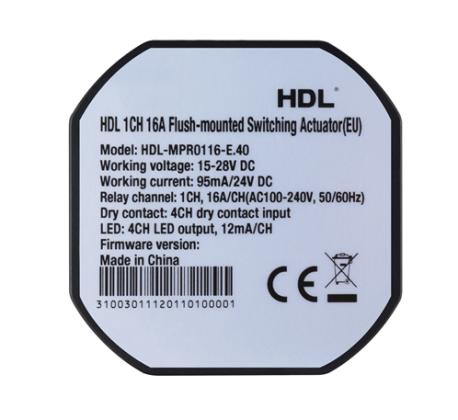 L’HDL MPR0116-E.40 è un attuatore di commutazione a incasso progettato per sistemi di automazione Buspro, ideale per la gestione puntuale di carichi elettrici in ambienti residenziali, commerciali e professionali. Il modulo offre 1 canale da 16A, alimentato a AC100–240V, garantendo solidità e prestazioni elevate in uno spazio estremamente compatto. Integra 4 ingressi a contatto pulito e 4 uscite LED da 12mA, consentendo il controllo intelligente di luci, tende, ventilazione e prese comandate tramite pannelli o pulsanti dedicati. È presente un pulsante di programmazione con indicatore LED, che permette di commutare rapidamente il canale e semplifica la configurazione del dispositivo. La comunicazione avviene tramite HDL Buspro (485), assicurando piena integrazione con scenari domotici avanzati e facilitando funzioni di automazione evolute. Grazie alla struttura miniaturizzata e ai materiali ignifughi, il modulo si installa facilmente in una scatola da incasso standard europea, offrendo affidabilità, sicurezza e un perfetto equilibrio tra dimensioni ridotte e capacità operativa.  La struttura compatta (46.8mm×46.8mm×23mm) ne semplifica l’installazione nei quadri elettrici.