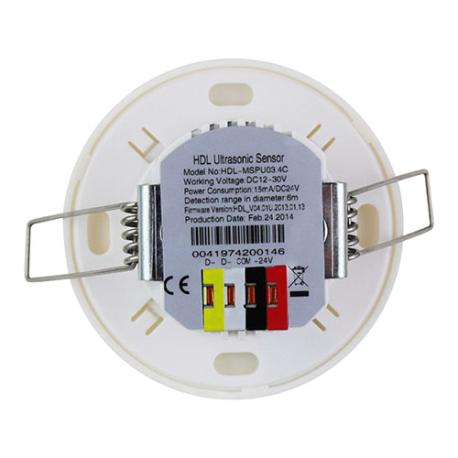L’HDL MSPU03.4C è un sensore a ultrasuoni da soffitto progettato per applicazioni avanzate di automazione, integrando sensore ultrasonico, sensore LUX, interruttore universale e blocco logico, che possono essere combinati per creare condizioni intelligenti in diversi scenari applicativi. Supporta i comandi di sicurezza HDL e consente logiche complesse grazie a 24 blocchi logici, ciascuno con fino a 20 target di uscita, oltre alla possibilità di utilizzare gli Universal Switch 201–248 come ingressi logici con funzione di auto-off. L’unità offre una portata di rilevamento ultrasonico fino a 6 m con altezza di installazione di 3 m, mentre il sensore LUX copre un range di 0–500 lux. Funziona con alimentazione 12–30V DC, assorbendo circa 30mA a 24V, e opera in condizioni ambientali comprese tra 5°C e 45°C. Il modulo, con dimensioni 63×38 mm, installazione a soffitto e grado di protezione IP20, utilizza materiali resistenti come ABS e lente a infrarossi, offrendo una soluzione compatta, affidabile e versatile per sistemi HDL Buspro. Dimensioni:Diametro 63mm (Foro da incasso 45mm).