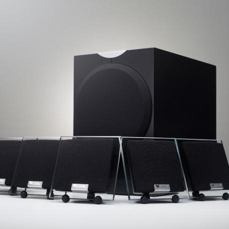 Kit sistema audio Home Theatre composto da: N.5 Waterfall Audio Serio, N.1 Waterfall audio HFM-200, finitura nera.