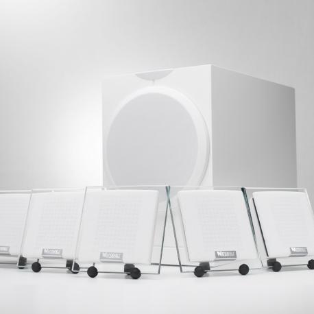 Kit sistema audio Home Theatre composto da: N.5 Waterfall Audio Serio, N.1 Waterfall audio HFM-200, finitura bianca.