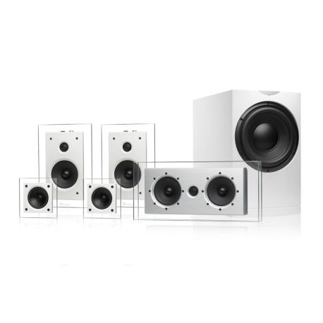 Kit sistema audio Home Theatre composto da: N.1 Waterfall Audio Elora Evo Center (Griglia inclusa), N.2 Waterfall Audio Hurricane Evo, N.2 Waterfall Audio Serio, N.1 Waterfall audio HF2-250, finitura bianca.