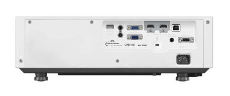 Rapporto di proiezione: 1.09-1.77:1, ottica fissa manuale, installabile in qualsiasi posizione, compatibile con EasyQR, con software MultiMonitoring & Control Software, digital zoom extender, audio incorporato 10 W mono compatibile con modulo wireless opzionale. Contrasto 3.000.000:1, shift +44%-0% v, ±20% h, correzione del trapezio ±25° v, ±35° h. Segnali TV da 480i a 4K (30p). Ingressi: 2x HDMI, 2x RGB/component (D-Sub15), audio stereo (RCA+minijack), USB. Controlli: LAN (RJ45), RS-232 (D-Sub9). Rumorosità 36 dB, consumo 300 W. Dimensioni (LxAxP): 399x133x348 mm. Peso: 6.5 kg. Colore: bianco.