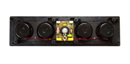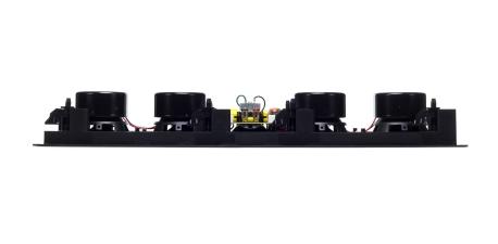 Diffusore da incasso a parete adatto a stanza maggiori di 56 metri cubi. 4 woofer in fibra di vetro da 5.25" e 1 tweeter con cupola in titanio da 1" con tromba 90° X 90° Tractrix. Impedenza nominale compatibile con 8 ohm. 600 W di picco e 150 W di potenza RMS. 92 dB di sensibilità. Risposta in frequenza 46 Hz 20 kHz. Frequenza di crossover a 250 Hz e 2100 Hz. Con sistema di installazione Ultra Sicuro. Griglia piana, magnetica e vernicabile. Dimensioni (LxAxP): 20.65x73.35x8.94 cm. Dimensioni del foro necessario (LxA): 16.51x69.19 cm. Profondità di montaggio 8.94 cm. Peso: 8.3 kg.