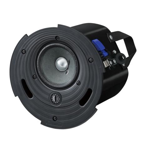 Montaggio per soffitti in cartongesso (supporti forniti), struttura in ABS con griglia metallica magnetica verniciabile, utilizzabile sia in impedenza che con linee a 100 V. Sensibilità 87 dB (1 W/1 m); potenza 3,8/7,5/15/30 W a 100 V; risposta in frequenza 80 Hz 20 kHz; dispersione 130° conica; connettore Euroblock. Dimensioni: 225x195 mm, foro per incasso diametro 186 mm. Peso: 2,6 kg. Colore: bianco.