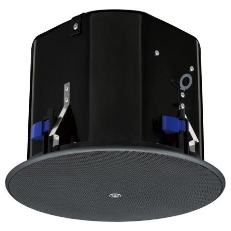 Montaggio per soffitti in cartongesso (supporti forniti), struttura in ABS con griglia metallica magnetica verniciabile, utilizzabile sia in impedenza che con linee a 100 V. Diffusore 2 vie con tweeter da 1"; Sensibilità 90 dB (1 W/1 m); potenza 7,5/15/30/60 W a 100 V; risposta in frequenza 55 Hz 20 kHz; dispersione 100° conica; connettore Euroblock. Dimensioni: 325x259 mm, foro per incasso diametro 285 mm. Peso: 6,6 kg. Colore: nero.