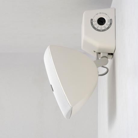 Coppia diffusori compatti passivi in ABS, completo di trasformatore esterno integrato nel supporto. Sensibilità (1 W/1 m) 86 dB SPL. Risposta in frequenza 130 Hz 20 kHz, angolo di copertura 150°x160°. Connessione a morsetto. Dotati di staffa a parete o soffitto. Dimensioni (WxHxD): 184x130x94 mm. Peso: 1 kg. Colore: bianco.