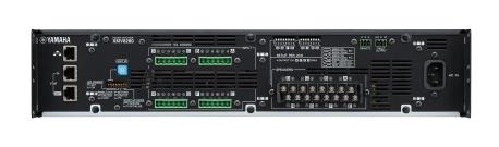 Amplificatore multicanale 8 Ch dotato di scheda di controllo remoto via LAN e connettività YDIF, possibilità di scegliere la modalità d'uscita bassa impedenza (4 o 8 ohm) o 100 V di ogni singola coppia di canali. Potenze: 8x 280 W a 4 o 8 ohm; possibilità di unire 2 canali con modalità Double Power con potenze di 560 W a 4 o 8 ohm; 8x 250 W a 100 V; la configurazione della modalità d'uscita avviene per coppia di canali. Pannello frontale con comandi di: accensione, selezione controllo canale, encoder di regolazione parametri, display numerico a 3 cifre, pulsante mute, pulsante funzione; indicazioni: accensione, segnale, mute, protezione, limiter, alert, blocco pannello. Ingressi bilanciati su connettori morsetto Euroblock 3P; uscite su connettori a morsetto fisso; connessioni YDIF 2x RJ45 IN/OUT; connettore remote control morsetto Euroblock 3P; connettore uscita errore Euroblock 3P. Risposta in frequenza 20 Hz 20 kHz; Sensibilità d'ingresso 4 dBu; rapporto S/N = 100 dB, crosstalk = 60 dB, impedenza d'ingresso bilanciato 20 kohm, circuito HPF selezionabile Off/40/80 Hz. Circuiti di protezione a ripristino automatico: cortocircuiti, termico, sovra o sotto alimentazione, on/off muting, DC, clip limiter. Raffreddamento con doppia ventola a 3 velocità, aspirazione aria frontale ed espulsione posteriore. Tensione di lavoro 100-240 V 450 W (1/8 potenza 4 ohm). Dimensioni (HxWxD): 88x480x422 mm, (2U). Peso: 10,1 kg.